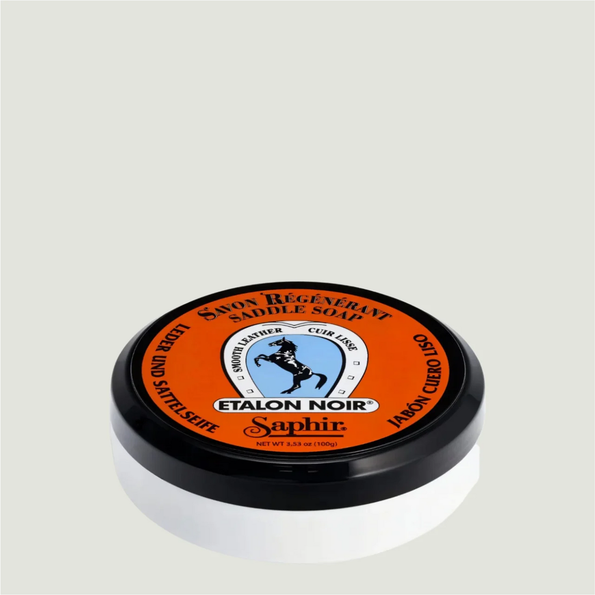 Saphir Blue Jabón Etalón Noires un jabón premium conglicerina y aceites nutritivos,ideal para limpiar cuero liso sin resecarlo. Elimina suciedad, hidrata y protege calzado, bolsos, chaquetas y muebles. Su fórmula cremosa mantiene el brillo y la suavidad natural del cuero. Fabricado en Francia, calidad profesional.