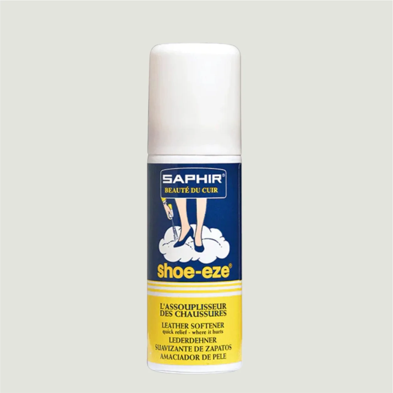 Saphir Blue Shoe-Eze es un spray profesional diseñado para flexibilizar cuero liso en calzado nuevo o ajustado, eliminando puntos de presión y evitando molestias al caminar. Su fórmula suaviza el cuero permitiendo que se adapte al contorno del pie. Ideal para zapatos de piel natural. No usar en ante, nobuck o materiales sintéticos.