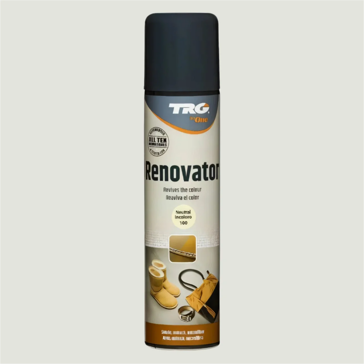 Recupera la intensidad del color y la suavidad original de tus artículos de ante con TRG Renovador Ante Spray, el restaurador en aerosol que revive la apariencia aterciopelada del ante, nubuck y gamuza. Gracias a sus pigmentos de alta calidad y fórmula especializada, este producto restaura el tono original y levanta las fibras del material, devolviéndole vida a tus piezas favoritas.